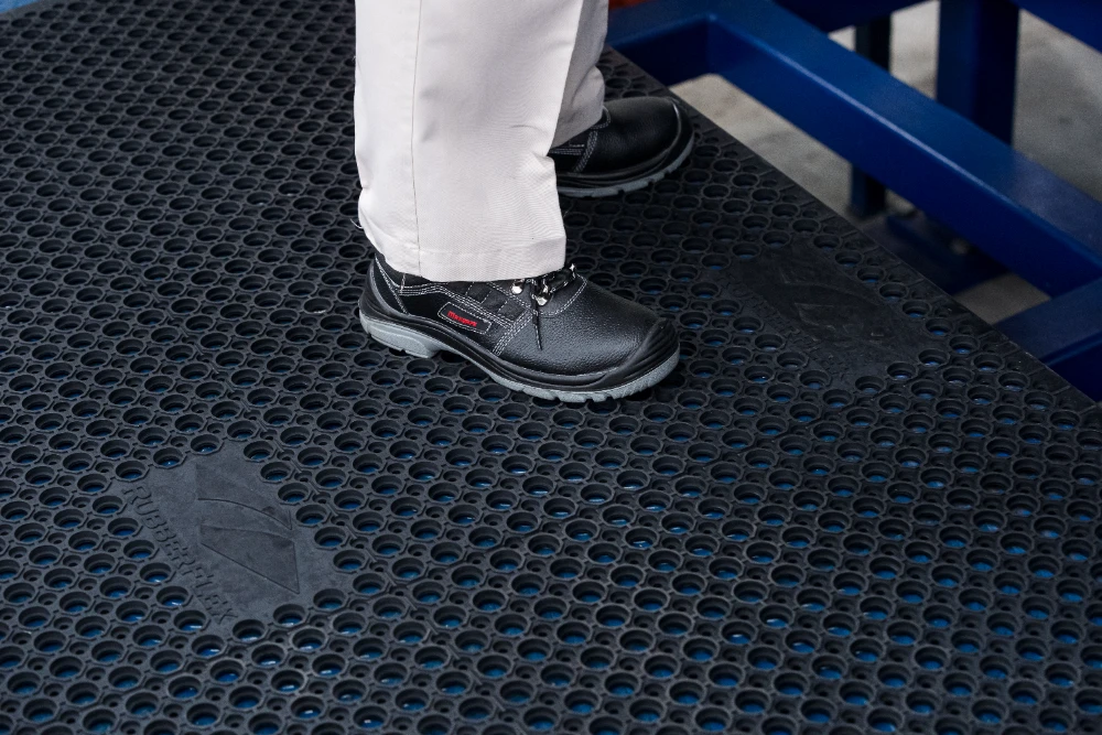 ในโรงงาน RubberFlex มักถูกใช้เป็นพื้นทางเดินหรือแผ่นรองในพื้นที่ทำงาน เพื่อช่วยลดแรงสั่นสะเทือน เพิ่มความปลอดภัย ลดการลื่น และปกป้องพื้นผิวจากการสึกหรอ ทำให้สภาพแวดล้อมการทำงานปลอดภัยและมีประสิทธิภาพมากขึ้น