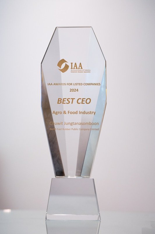 นายชูวิทย์ จึงธนสมบูรณ์ ประธานเจ้าหน้าที่บริหาร บริษัท นอร์ทอีส รับเบอร์ จำกัด (มหาชน) หรือ NER รับรางวัล BEST CEO ประจำปี 2567 กลุ่มเกษตรและอุตสาหกรรมอาหาร จากนายพิชัย ชุณหวชิร รองนายกรัฐมนตรีและรัฐมนตรีว่าการกระทรวงการคลัง พร้อมด้วย นายไพบูลย์ นลินทรางกูร นายกสมาคมนักวิเคราะห์การลงทุน ในงานประกาศรางวัล IAA AWARDS for Listed Companies 2024 จัดโดยสมาคมนักวิเคราะห์การลงทุน