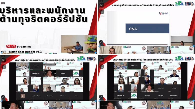 บริษัท นอร์ทอีส รับเบอร์ จำกัด (มหาชน) ได้เรียนเชิญ คณะผู้บริหาร พนักงาน คู่ค้า และผู้มีส่วนได้ส่วนเสียทุกท่าน ร่วมอบรมหลักสูตร "บทบาทของผู้บริหารและพนักงานในการต่อต้านคอร์รัปชัน" ซึ่งจัดขึ้นเพื่อส่งเสริมวัฒนธรรมองค์กรที่โปร่งใส ยุติธรรม และปฏิบัติตามจรรยาบรรณอย่างเคร่งครัด