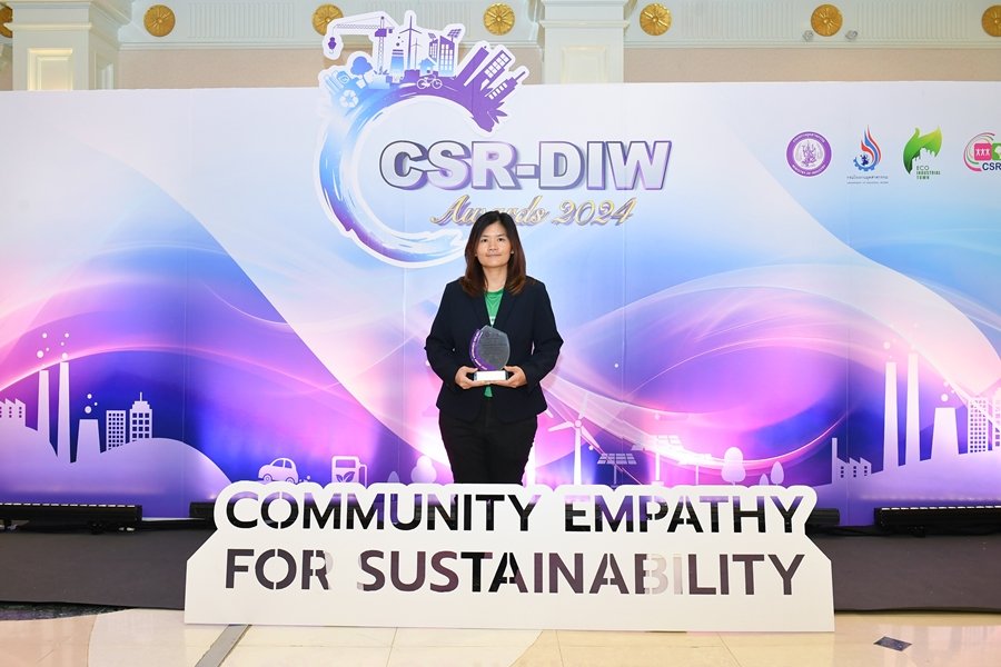 นางสาวปาร์ย อรรถพิสาล รองประธานเจ้าหน้าที่บริหาร สายงานพัฒนาความยั่งยืน รับโล่รางวัลและเกียรติบัตร CSR-DIW Award 2024 โครงการส่งเสริมโรงงานอุตสาหกรรมให้มีความรับผิดชอบต่อสังคมและชุมชนเพื่อเป้าหมายการพัฒนาอย่างยั่งยืน (CSR-DIW to achieve SDGs) ประจำปี 2567 ต่อเนื่องเป็นปีที่ 3 จัดโดยกรมโรงงานอุตสาหกรรม กระทรวงอุตสาหกรรม