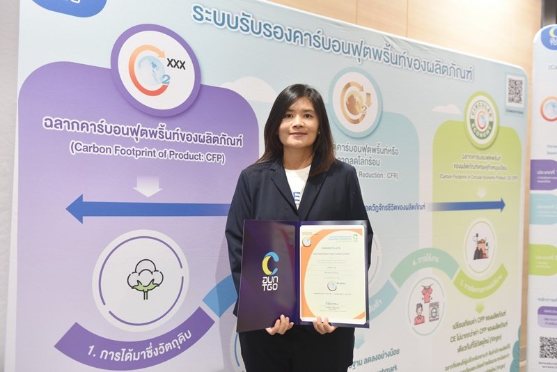 คุณปาร์ย อรรถพิสาล รองประธานเจ้าหน้าที่บริหาร สายงานพัฒนาความยั่งยืน NER เข้ารับประกาศนียบัตรเครื่องหมายรับรองฉลากคาร์บอนฟุตพริ้นท์ของผลิตภัณฑ์ (Carbon Footprint of Product : CFP) โดย TGO องค์การบริหารจัดการก๊าซเรือนกระจก (องค์การมหาชน) หรือ Thailand Greenhouse Gas Management Organization (Public Organization)