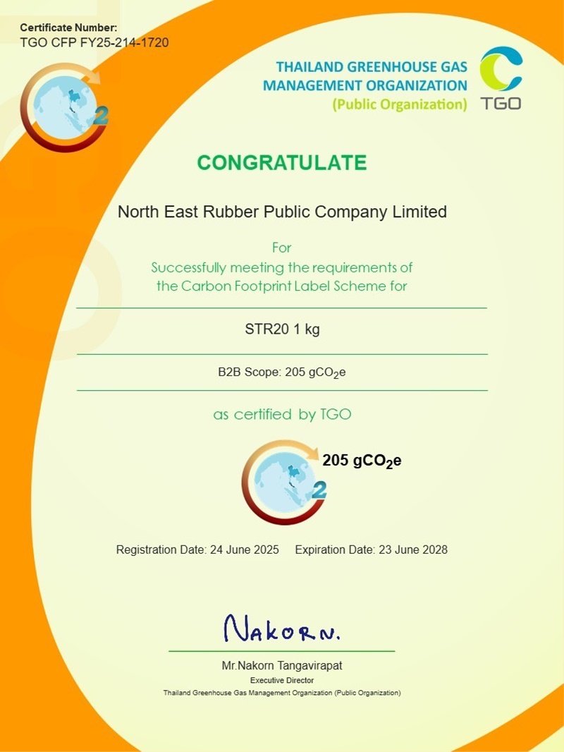 NER สร้างคุณค่าที่มากกว่ายาง ร่วมเป็นหนึ่งในพลังสำคัญ แสดงความมุ่งมั่นต่อสิ่งแวดล้อม ผ่านการรับรองฉลากคาร์บอน จาก TGO สะท้อนความรับผิดชอบจากกระบวนการผลิตอย่างเป็นรูปธรรม
