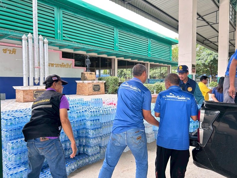 โดยส่งมอบน้ำดื่มเพื่อสนับสนุนภารกิจของเจ้าหน้าที่ และช่วยเหลือประชาชนผู้ได้รับผลกระทบ