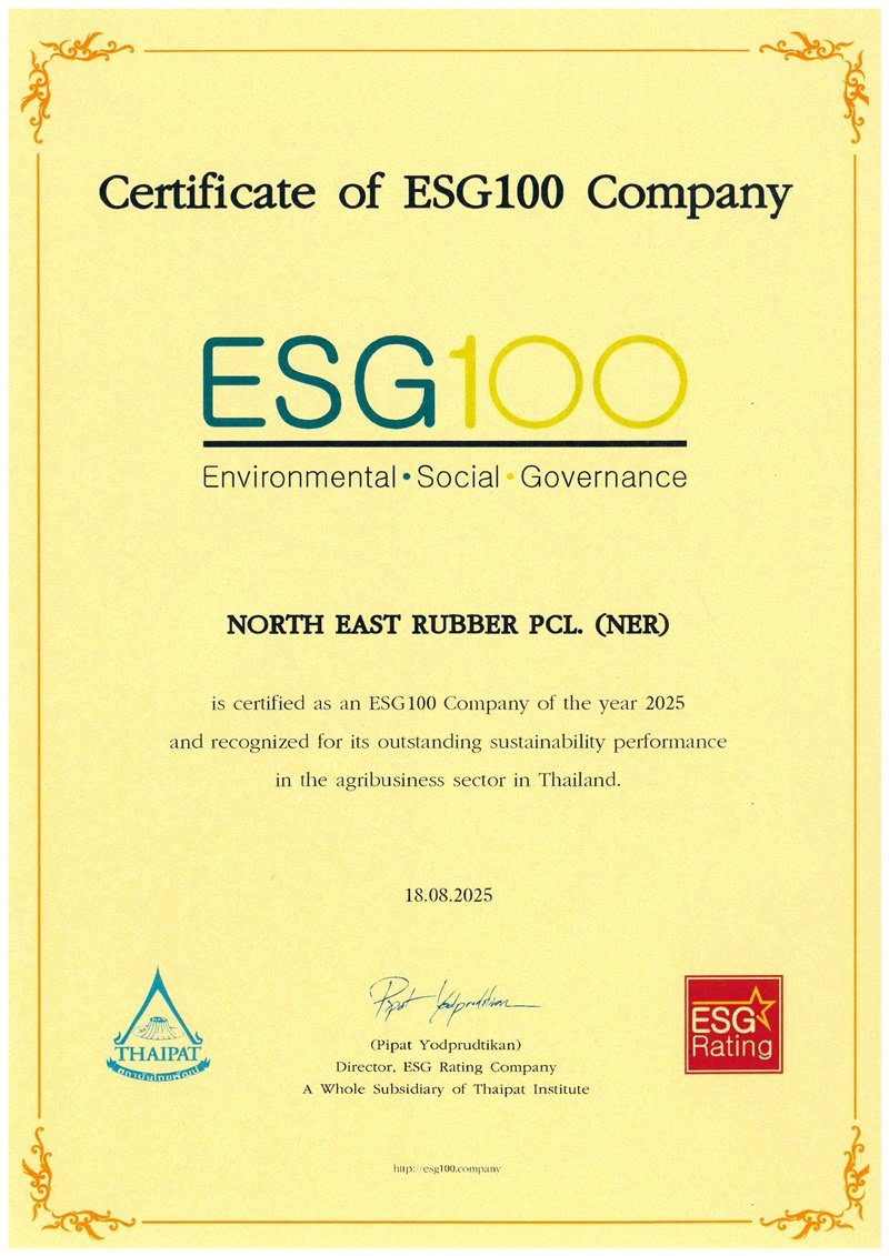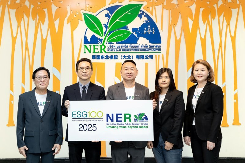 บริษัท นอร์ทอีส รับเบอร์ จำกัด (มหาชน) (NER) ผู้ผลิตและจำหน่ายยางแท่ง ยางแผ่นรมควัน ยางผสม เพื่อจำหน่ายไปยังผู้ผลิตในอุตสาหกรรมยานยนต์และกลุ่มผู้ค้าคนกลางทั้งในและต่างประเทศ ได้รับคัดเลือกให้เป็นหนึ่งในบริษัทกลุ่มหลักทรัพย์ ESG100 ที่มีการดำเนินงานโดดเด่นด้านสิ่งแวดล้อม สังคม และธรรมาภิบาล (Environmental, Social and Governance: ESG) จากการประเมินหลักทรัพย์จดทะเบียน ในปี พ.ศ. 2568 โดยสถาบันไทยพัฒน์