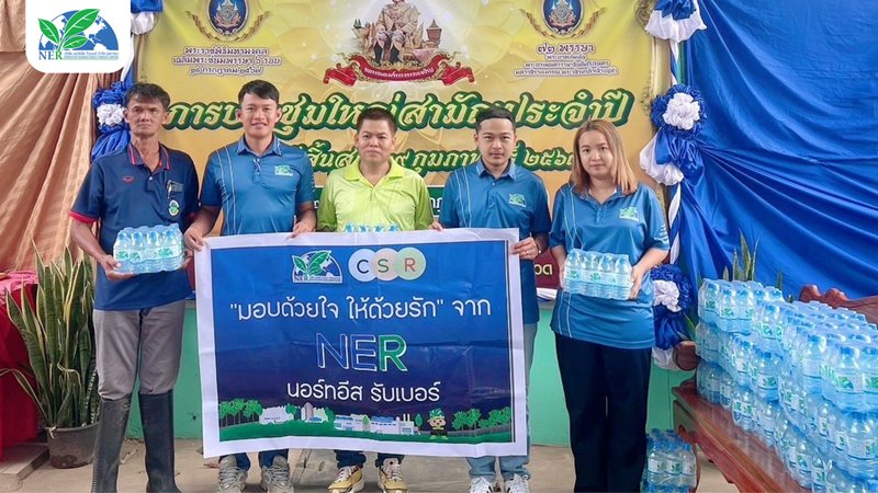 บริษัท นอร์ทอีส รับเบอร์ จำกัด (มหาชน) มอบเงินและน้ำดื่ม กิจกรรมจัดประชุมใหญ่สามัญประจำปี สหกรณ์กองทุนสวนยางนิคมบ้านกรวด